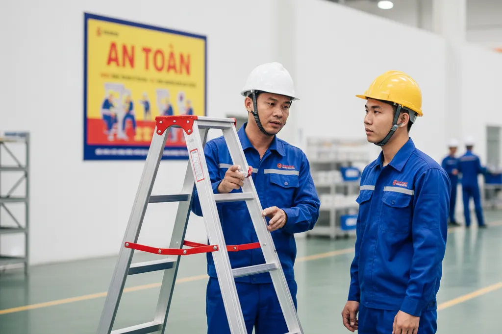 政令 44/2016/ND-CP は、労働者に対する安全衛生教育を義務付けています。特に、厳格な安全要求が求められる作業(グループ3)に従事する作業員には、はしごの正しい立て方(75度の法則)や、3点支持の原則などの実技教育が不可欠です。