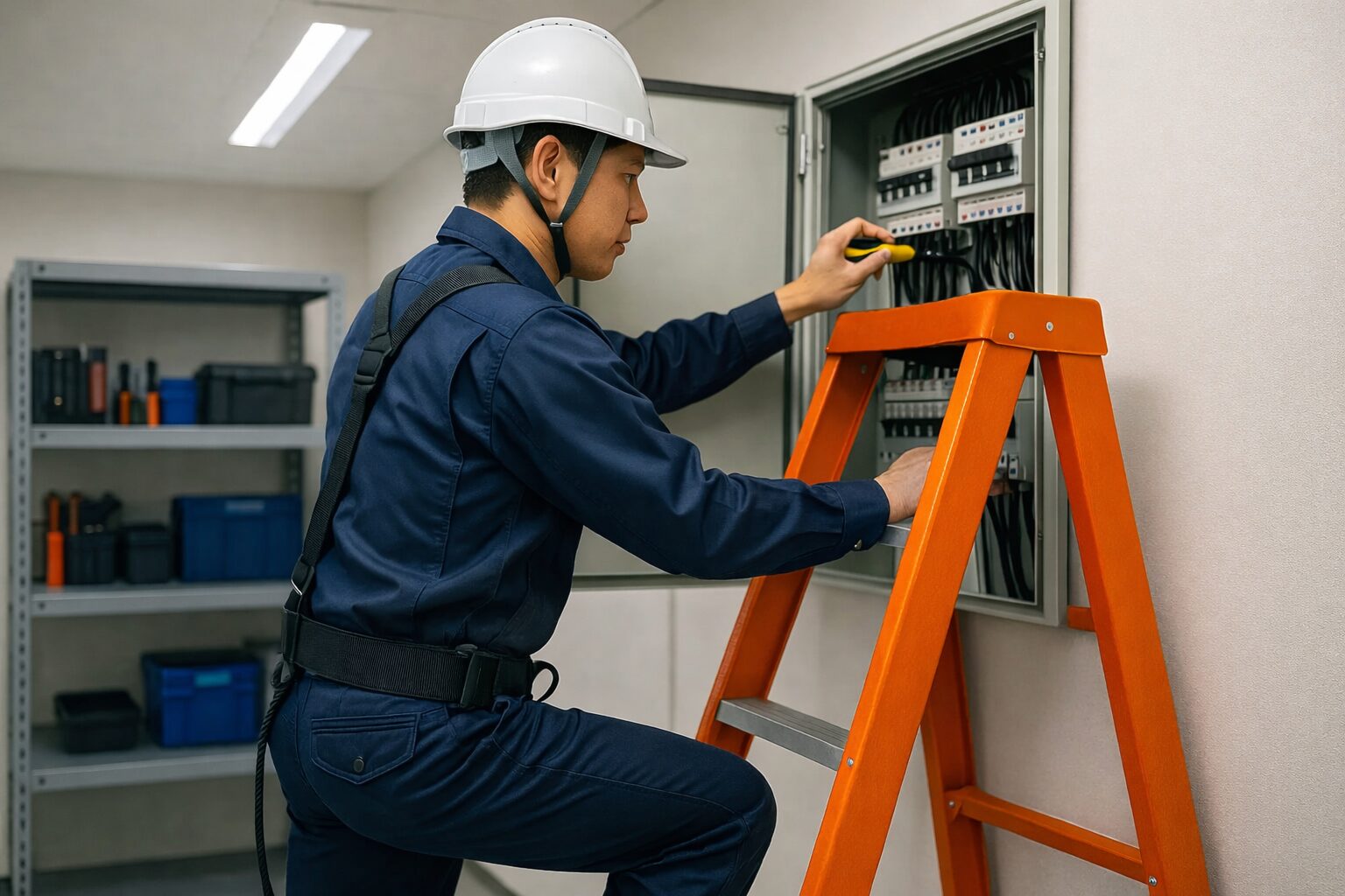 For high-place work indoors, such as maintaining electrical equipment or inspecting lighting and air conditioning, ladders and stepladders are indispensable. A persistent challenge, especially in electrical work within buildings near live wires, is the risk of electric shock accidents caused by using metal ladders. This article, aimed at equipment contractors responsible for electrical work and maintenance, explains how to select FRP (Fiber-Reinforced Plastic) ladders to reduce the risk of electric shock, using primary data and specific product examples.