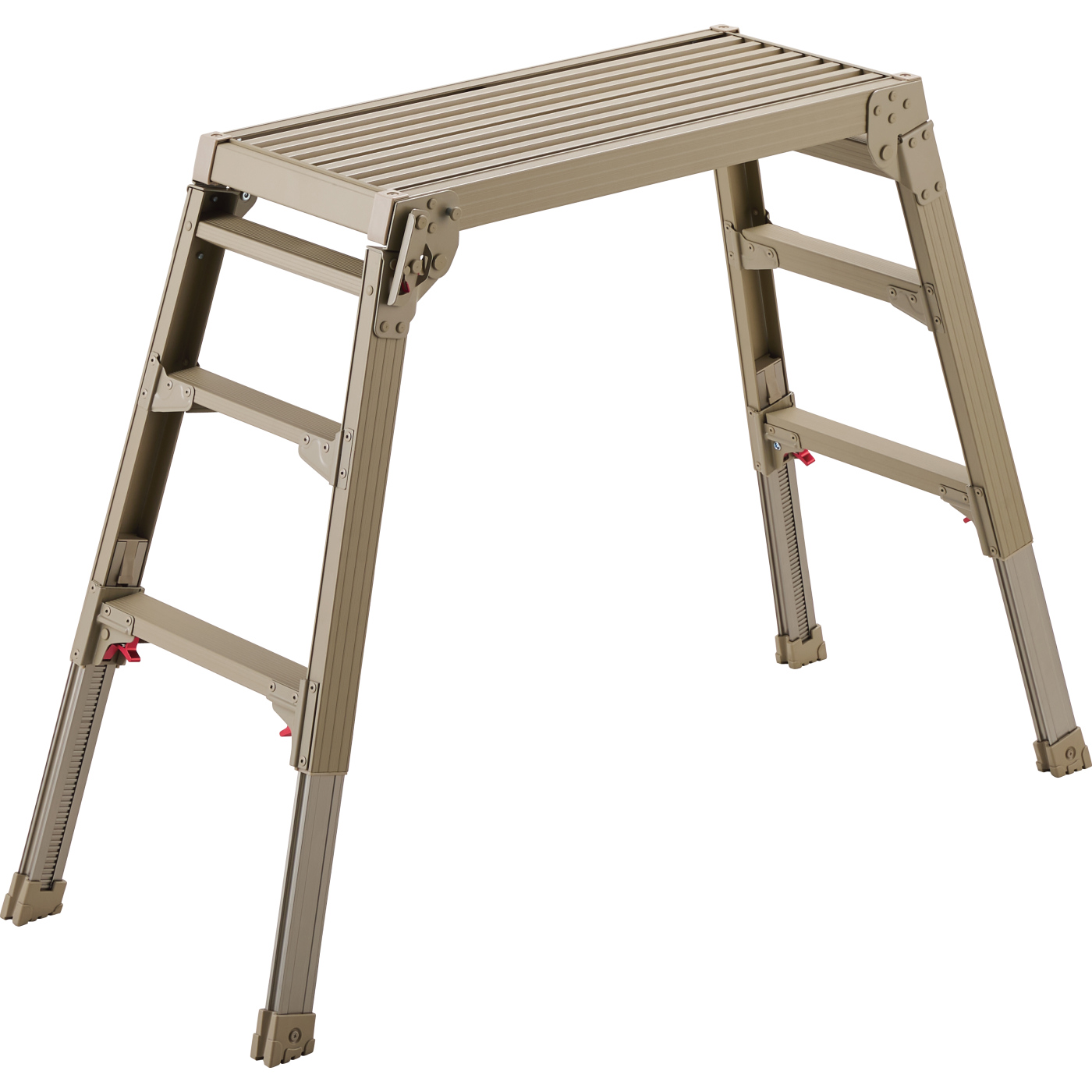 ① 落ち着いた印象のサンドベージュ色。様々な場所に馴染みやすいカラーリング。 ② 脚部にはアジャスターが付いており、段差のある場所でも水平に設置できます。 ③DIYや日曜大工、洗車など、様々な作業に使えます。 ④日本製品安全協会(SG)が制定する基準に適合している安全設計※日本国内限定の認証。