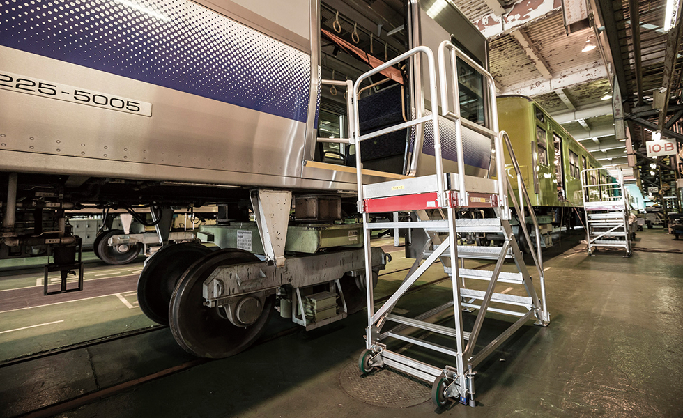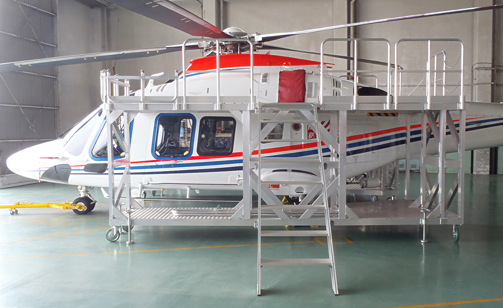 Thang chuyên dụng hỗ trợ kỹ thuật viên lên xuống phương tiện để thực hiện kiểm tra an toàn và bảo dưỡng.