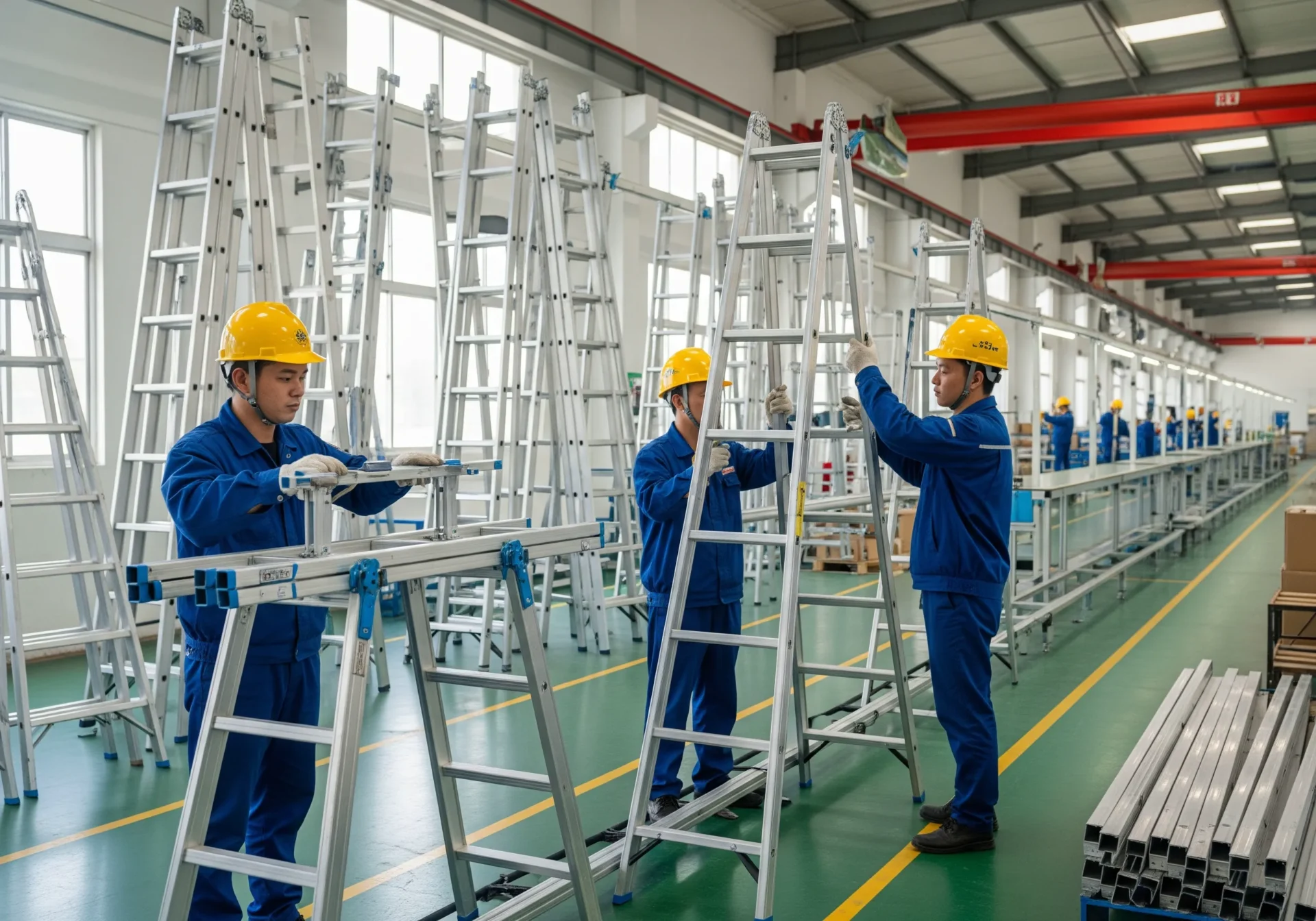 Để nâng cao tính an toàn của sản phẩm, điều cần thiết là phải xem xét độ bền và độ ổn định ngay từ giai đoạn thiết kế. Ví dụ, cấu trúc tấm trên cùng và cơ chế khóa phải có đủ độ bền để chịu được sự mài mòn và va đập do sử dụng nhiều lần. Ngoài ra, xử lý chống trượt nên được áp dụng thích hợp cho các thanh chống và bậc thang để cải thiện sự ổn định của chân người lao động. Trong sản xuất ở nước ngoài, các lỗi như nứt ở thanh chống và gãy phụ kiện kim loại đã được báo cáo; những lỗi này có thể được ngăn chặn bằng cách tăng cường lựa chọn vật liệu, độ chính xác gia công và quy trình kiểm tra. Hơn nữa, điều quan trọng là phải tuân thủ các luật và quy định có liên quan, chẳng hạn như Pháp lệnh về An toàn và Sức khỏe khi làm việc trên cao, ở mỗi giai đoạn thiết kế và sản xuất để đảm bảo cả an toàn tại chỗ và tránh các rủi ro pháp lý.