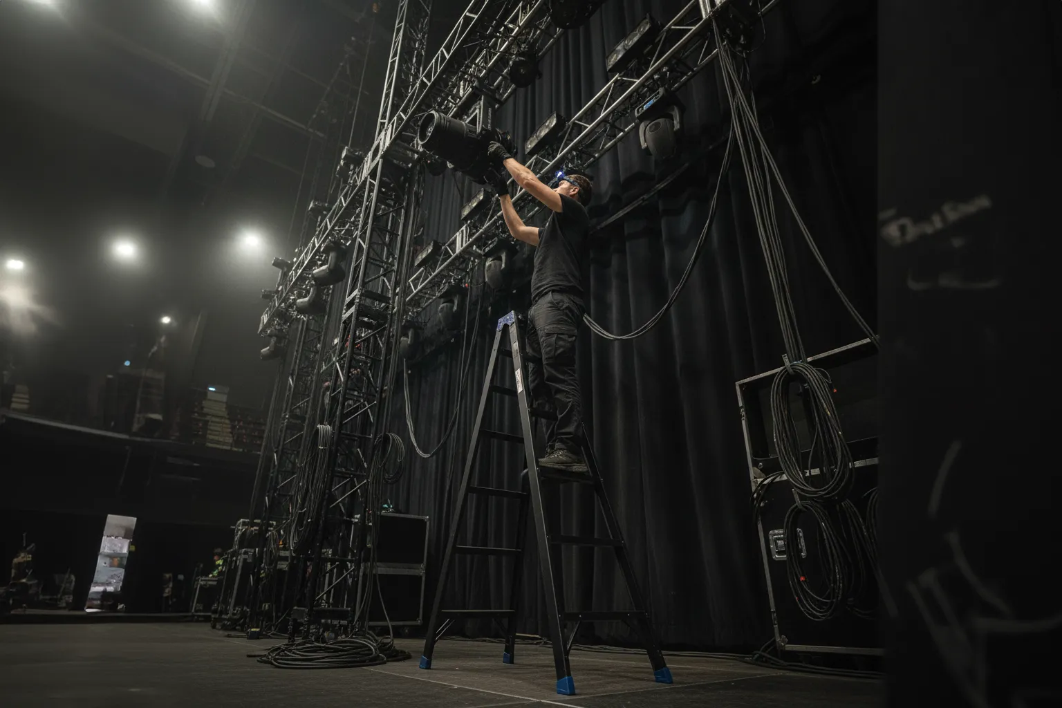 Tại các hiện trường sự kiện và nhiếp ảnh, thang không chỉ là công cụ “miễn là leo được là được”. Nó là “thiết bị” quan trọng để kiểm soát ánh sáng, làm chủ âm thanh và bảo vệ sự an toàn của người lao động.