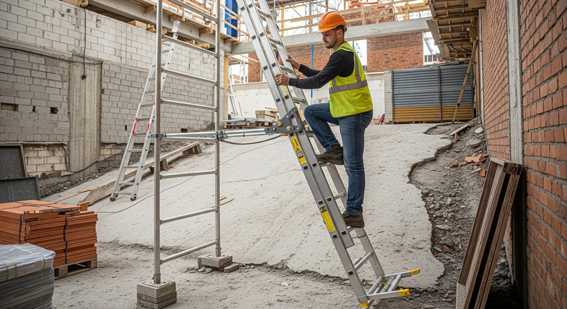 Trên các bề mặt sàn không bằng phẳng hoặc dốc, tải trọng tác động lên bốn góc của thang hoặc dàn giáo thi công không đồng đều, dễ gây ra trượt hoặc xoay ở những vị trí có lực ma sát yếu. Một cuộc khảo sát của CSA Group đã báo cáo rằng 12% tai nạn thang là do lắp đặt không ổn định (trên địa hình không bằng phẳng, bề mặt dốc).